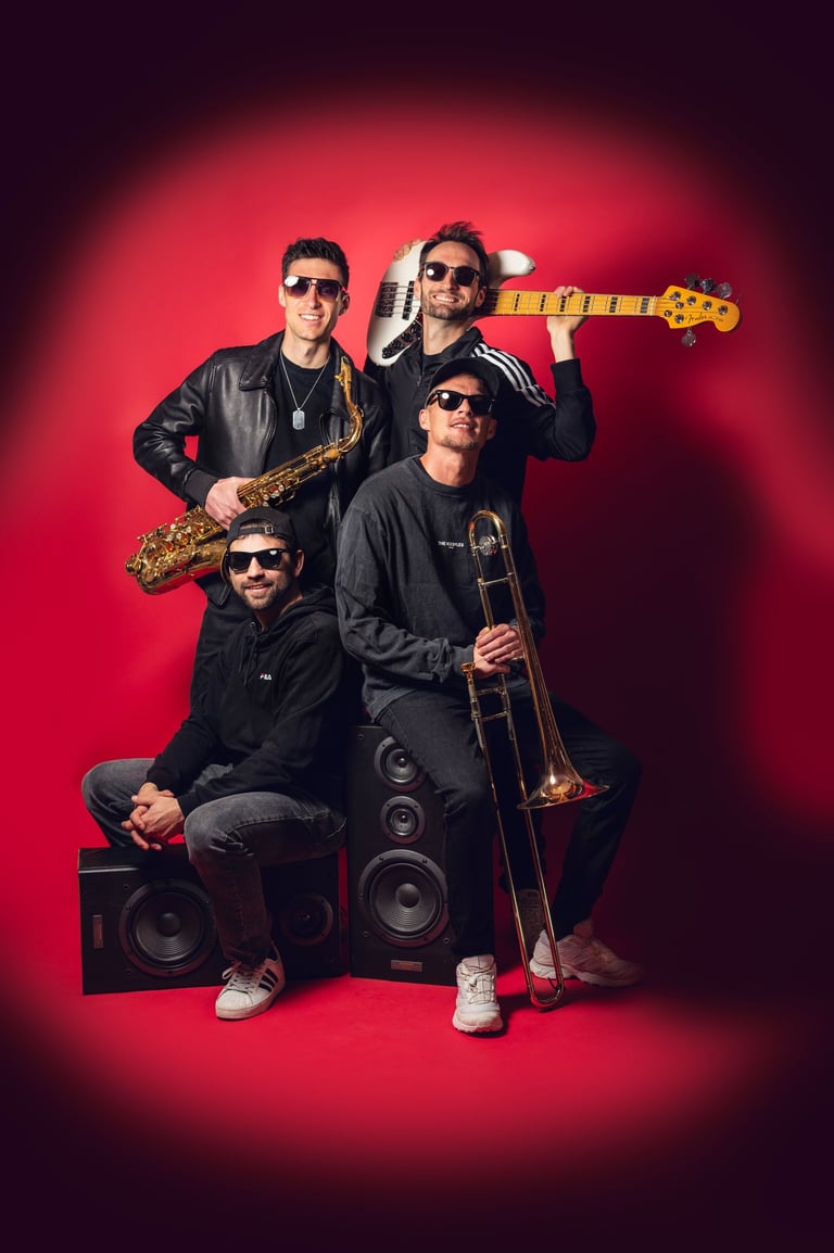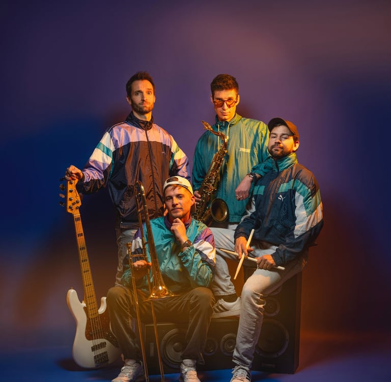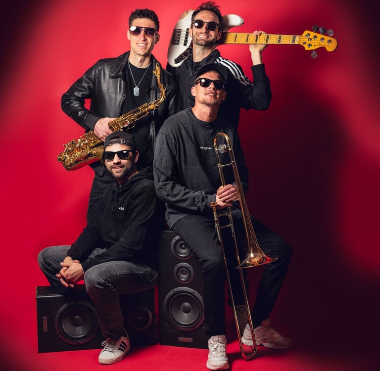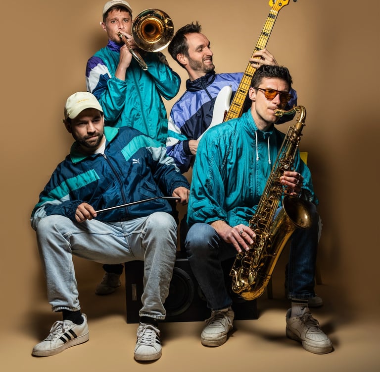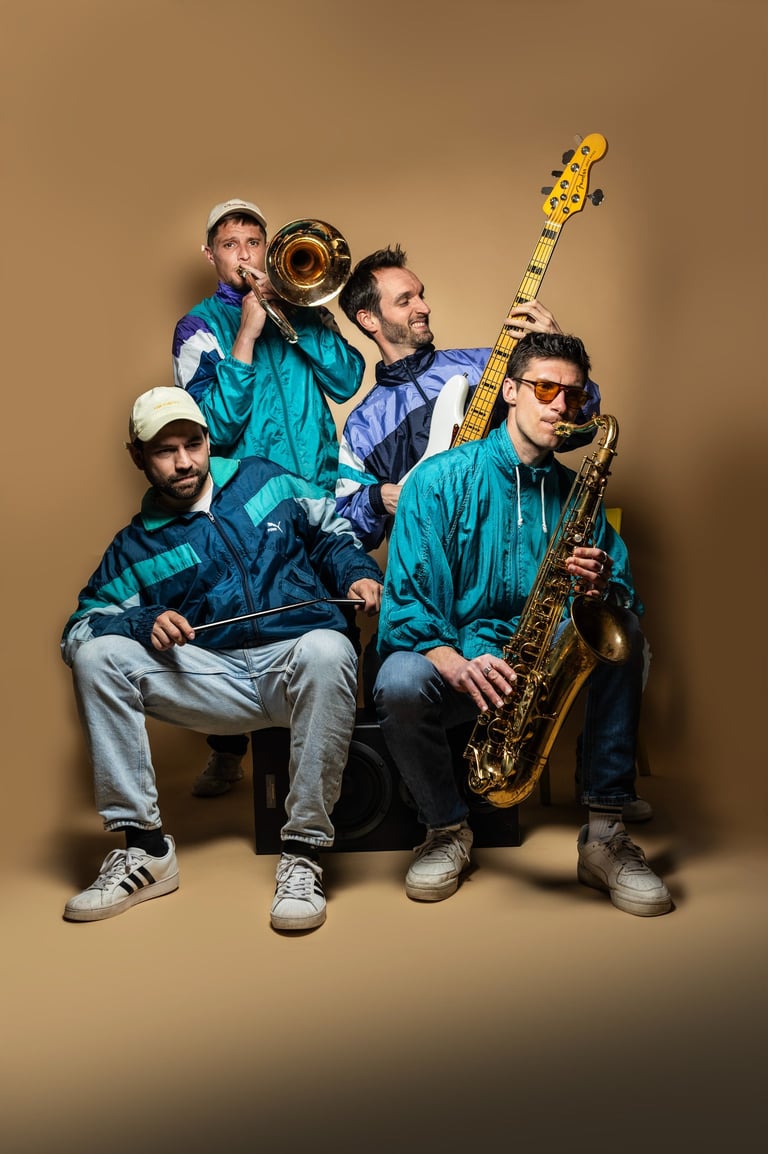 Formé d’un tromboniste qui rappe, un sax qui t’embarque en apesanteur, une basse qui fait vibrer les os et une batterie qui frappe le cœur.